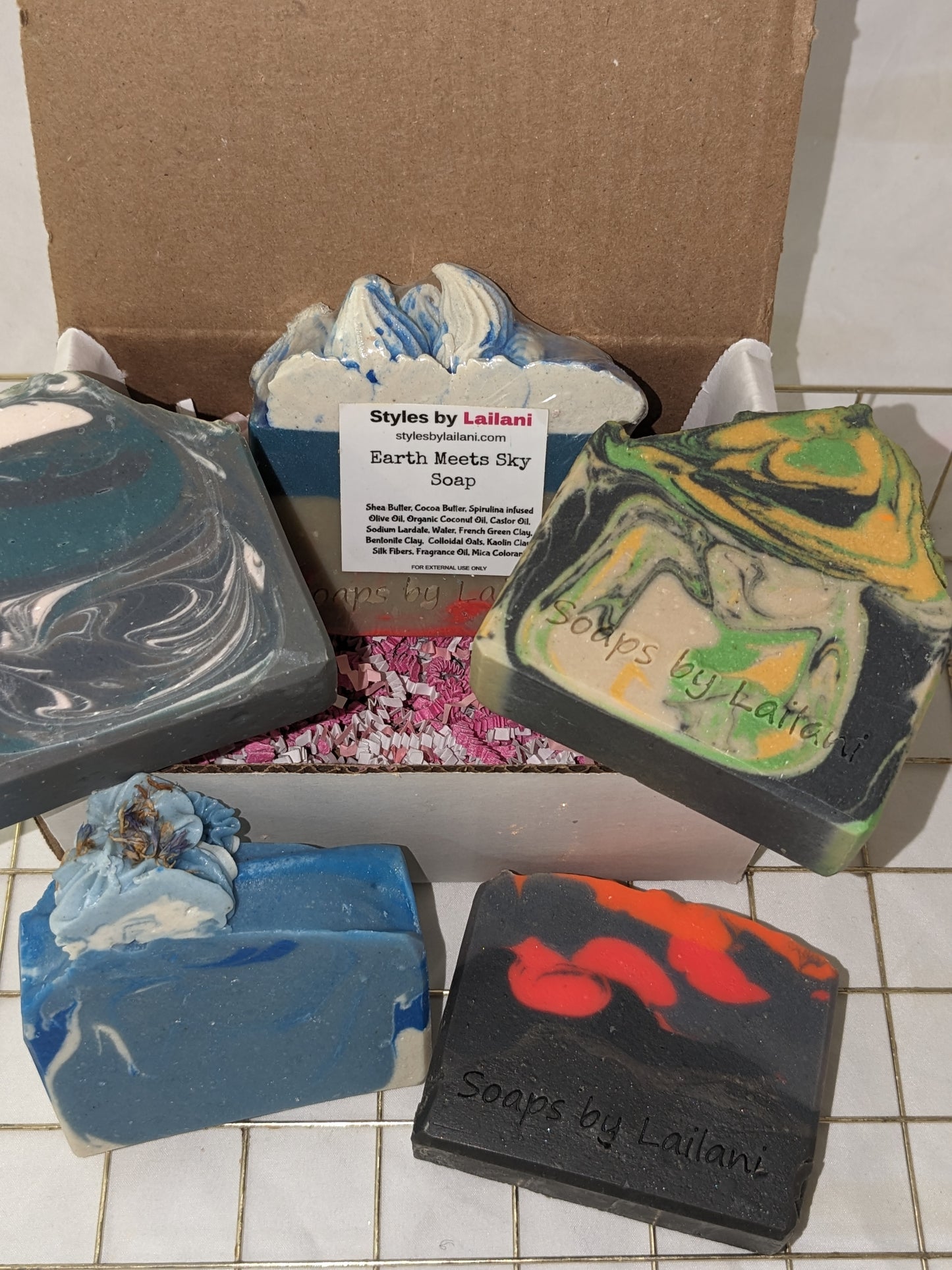 Dual Soap Box: Trio Love Beauty Bar, Rose & Charcoal Soap, Honey Turmeric and Charcoal Soap, Shea Coconut Calendula Swirl
