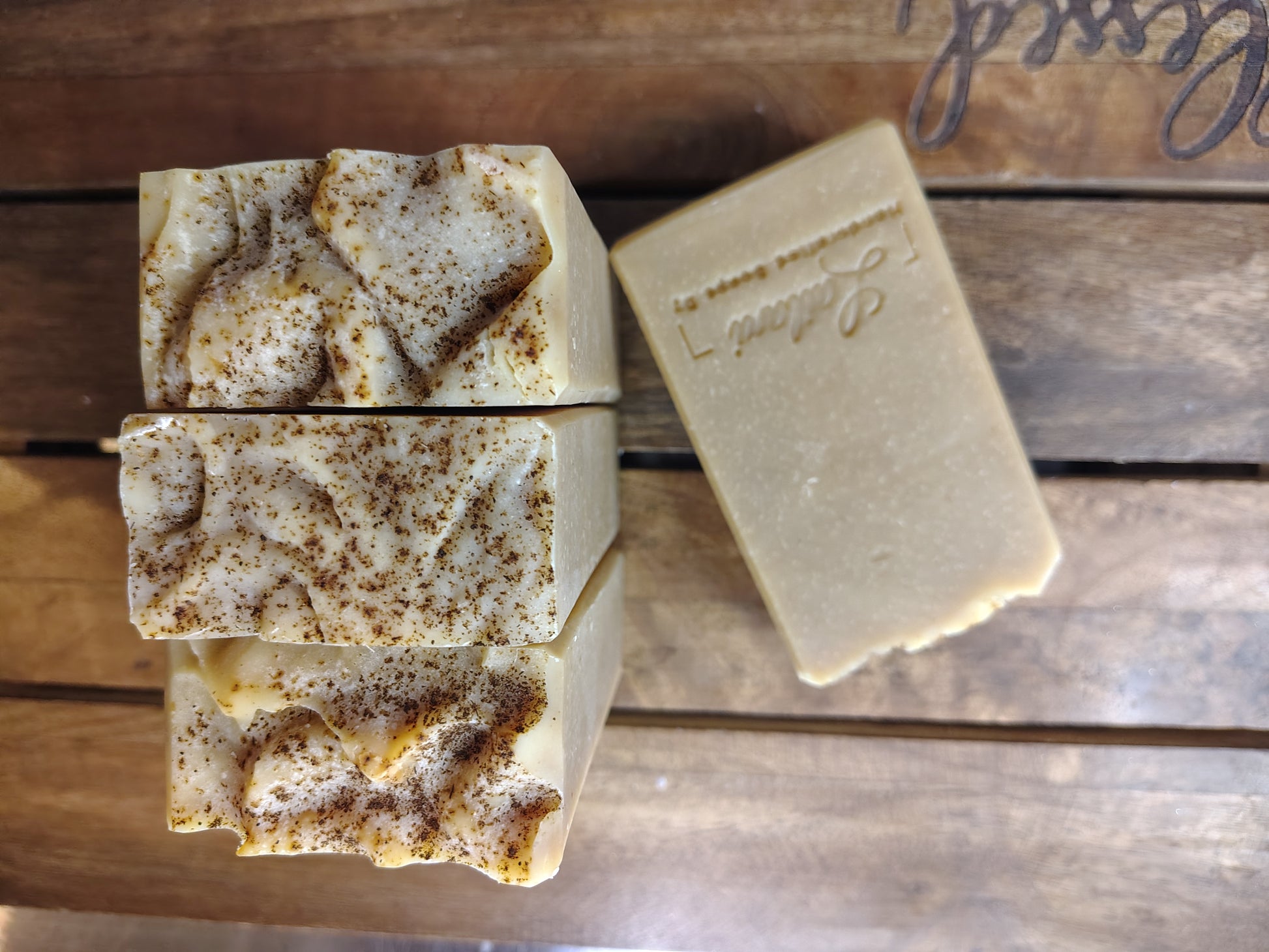 Ingredients Unrefined Shea Butter, Organic Coconut Oil, Extra Virgin Olive Oil, Sustainable Palm Oil, Organic Avocado Oil, Organic Castor Oil, Colloidal Oats, Kaolin Clay, Distilled Water, Infused Cloves (Whole), Sodium Lactate, Sodium Hydroxide(lye), Silk Fibers, Infused with Cloves, Dried Chamomile, Lavender, Rose Petals, Calendula, Hibiscus, Orange Peel